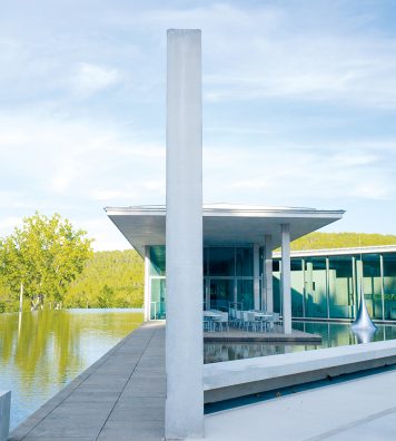 De plus en plus nombreux, ces nouveaux temples de la production viticole font l’objet de véritables pèlerinages œnotouristiques pour les passionnés de vin autant que d’architecture contemporaine. C’est du côté de Napa Valley, en Californie, qu’il faut se rendre pour voir les premiers bâtiments du genre bousculer l’architecture viticole purement fonctionnelle de l’époque. Inauguré en 1991 à Oakville, l’Opus One Winery est le fruit de l’alliance scellée dix ans plus tôt entre deux figures légendaires de la viticulture: le baron Philippe de Rothschild, propriétaire de Château Mouton Rothschild, à Pauillac, et Robert Mondavi, l’un des plus grands producteurs américains de l’époque. À partir de cépages bordelais traditionnels plantés sur quatre parcelles distinctes, les associés ambitionnent de produire un vin capable de rivaliser avec un premier cru classé. Dessiné par Scott Johnson, associé du cabinet d’architectes Johnson Fain – à qui l’on doit l’iconique Transamerica Pyramid, à San Francisco –, le bâtiment est un subtil mariage entre l’esthétique traditionnelle des châteaux français et le style épuré de l’architecture californienne contemporaine. L’édifice ne se dévoile que peu à peu aux yeux des visiteurs qui découvrent progressivement l’élégance de la forme, en osmose avec son environnement naturel, assurant une transition harmonieuse entre le vignoble avoisinant et les pelouses luxuriantes de la propriété.