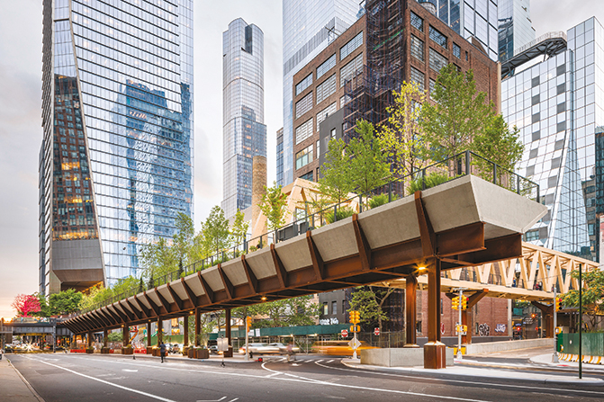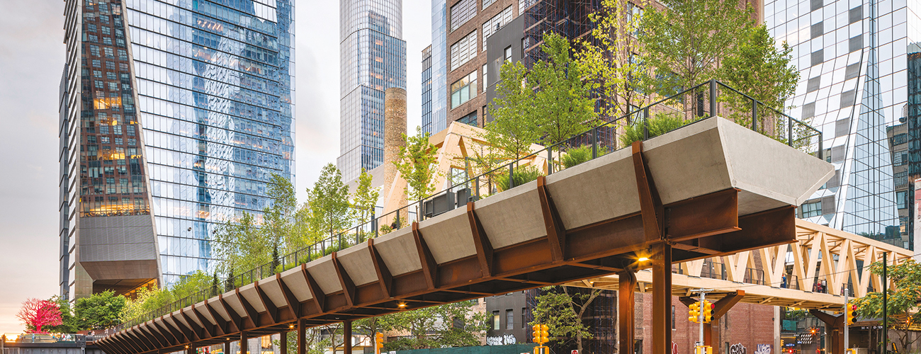 À New York, la High Line, l’ancienne voie ferrée aérienne, est devenue un parc urbain et un lieu de culture.