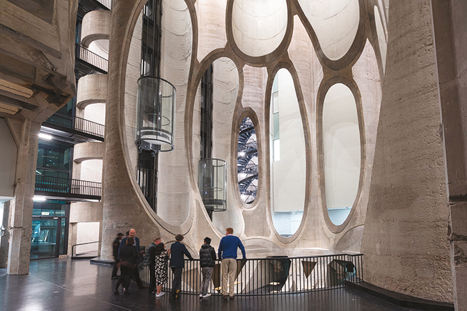 L’intérieur du Zeitz MOCAA de Johannesburg par l’architecte Thomas Heatherwick. Installé dans un silo à grain désaffecté, le musée d’art contemporain reprend la structure alvéolaire du maïs.