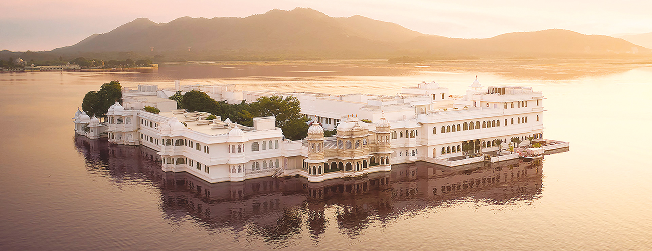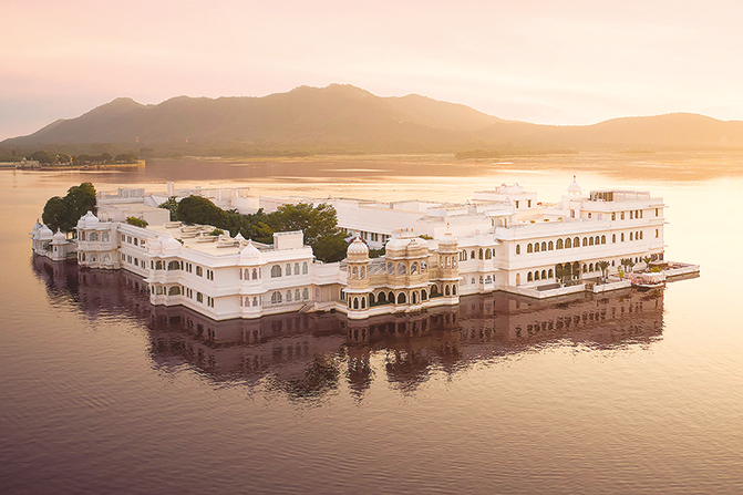 Le Taj Lake Palace à Udaipur en Inde. Démis de leurs privilèges en 1971, les maharajas ont rapidement trouvé les moyens d’entretenir leurs somptueuses demeures en les transformant en établissements de luxe.
